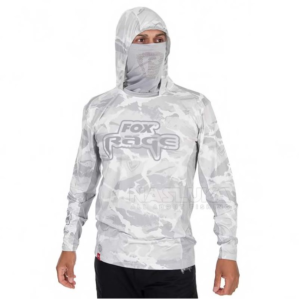 Прегледите над Блуза с дълъг ръкав и UV защита Fox Rage UV Hooded Top, White/Grey