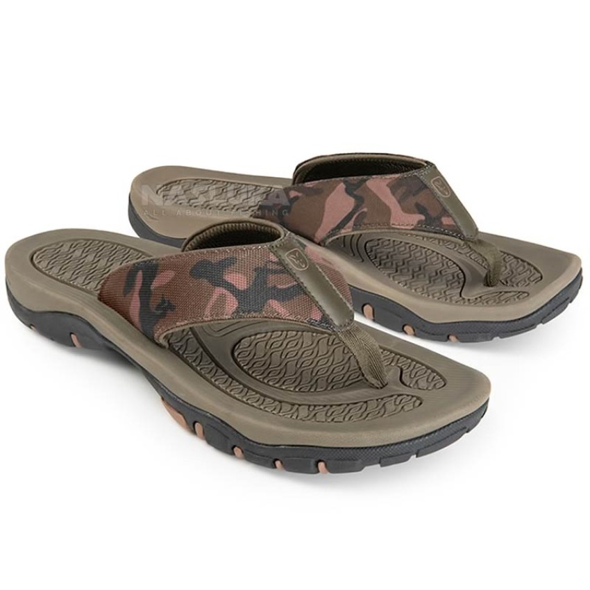 Чехлите Fox Flip Flop Camo са отличен избор за всеки риболовец, който иска да се чувства комфортно и стилно както край водоема, така и в ежедневието. Тези чехли комбинират типичния за Fox камуфлажен стил с каки цвят, предлагайки едновременно издръжливост и елегантност.