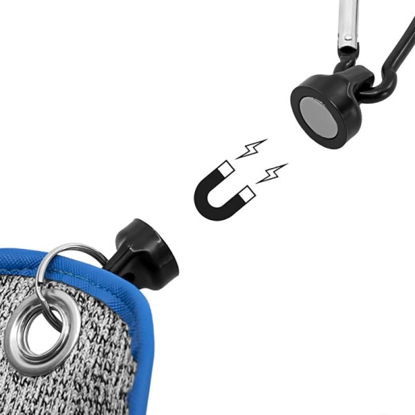 За бърза употреба ръкавицата е снабдена с магнит (включен в комплекта). Едната половина от магнита може да се постави върху панталона или отстрани на чантата, а другата остава върху ръкавицата. Когато искате да я използвате, трябва само да плъзнете ръката си в нея и да натиснете надолу, при което магнитът ще се освободи.