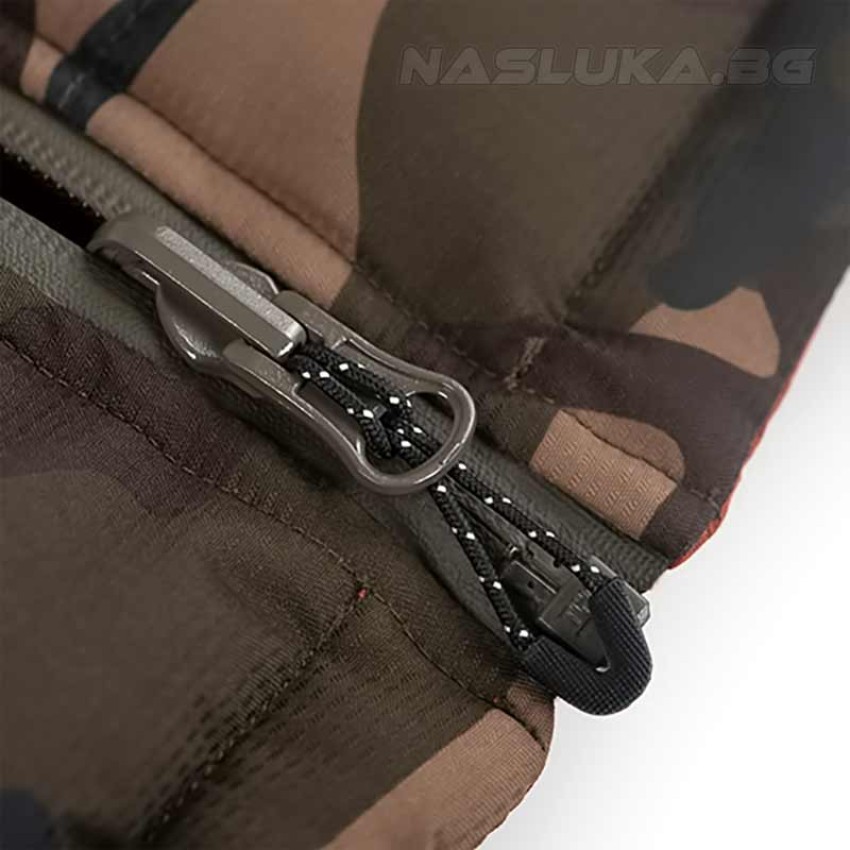 Якето е двулицево, като от едната страна е в камуфлажен, а от другата - в оранжево-кафяв цвят.