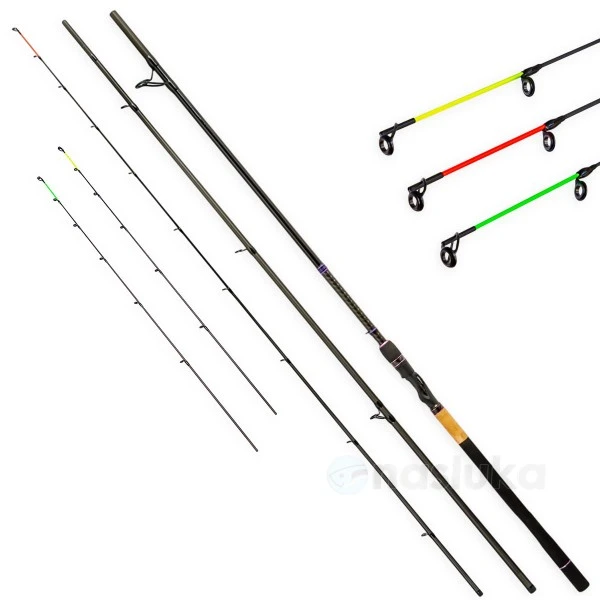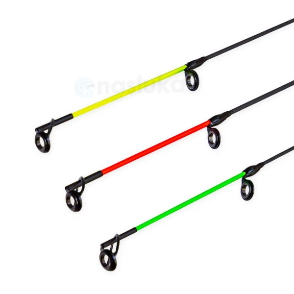 В комплекта са включени три карбонови върха с различна твърдост, позволяващи оптимален избор спрямо условията и отчетлив сигнал при кълване. ⚡