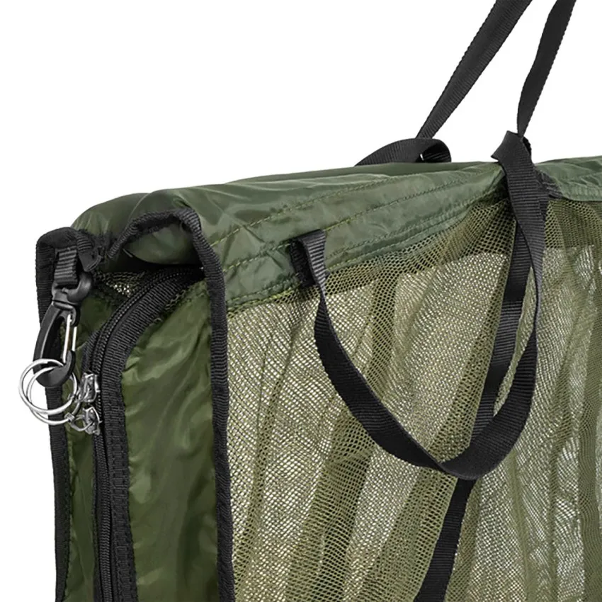 Ръбовете на този карп сак Delphin са оборудвани с плаващи елементи, които поддържат улова безопасно под водната повърхност докато подготвяте фотоапарата. Основната част е изработена от фина мрежа, щадяща за рибата.
