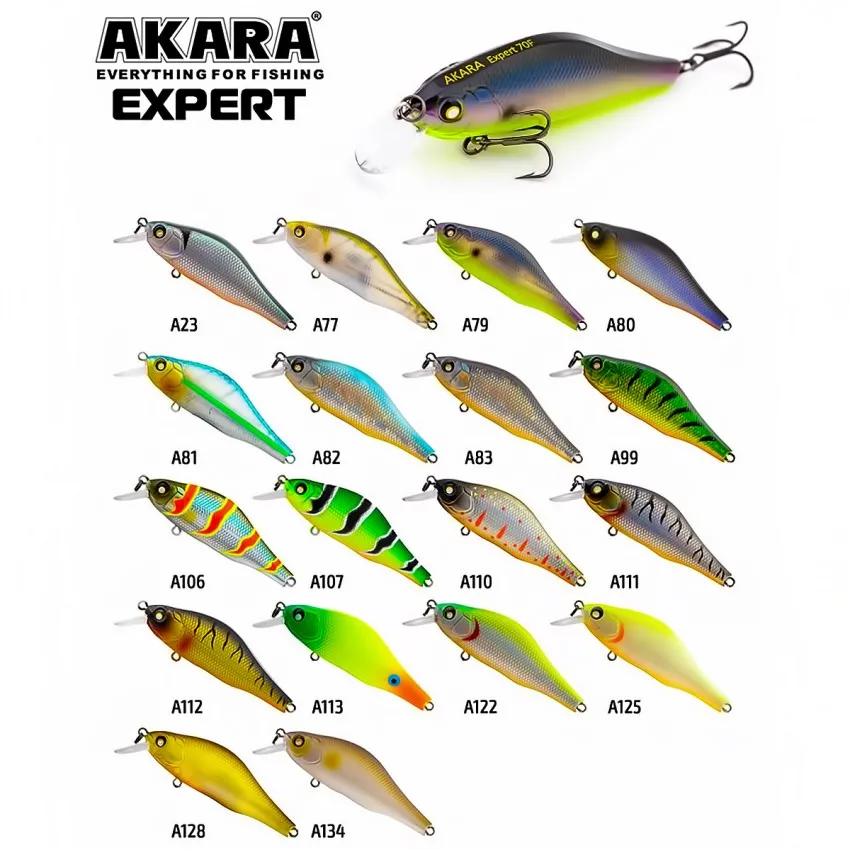 Akara Expert F 70мм е професионален шад воблер за ефективен риболов на щука, костур и други хищници в плитки води. С работна дълбочина 0-1.5 m, този модел е проектиран за заливи, брегови зони и участъци с растителност.