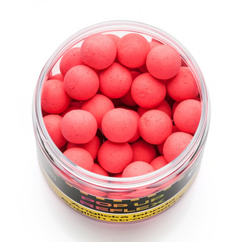 Mivardi Rapid Pop Up Reflex - English Strawberry са висококачествени плаващи топчета, създадени специално за риболов на шаран и други мирни риби. Тази серия съчетава ярки цветове, интензивен аромат и отлична плаваемост за максимално привличане.