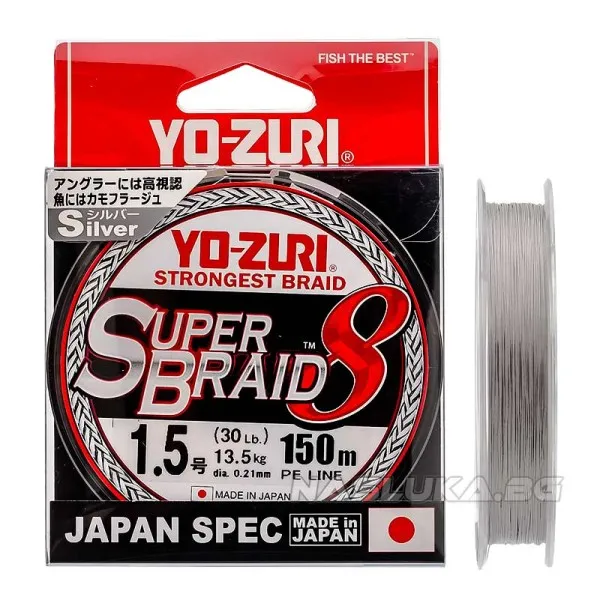 Плетено 8-нишково влакно Yo-Zuri SuperBraid x8, 150 м, Silver