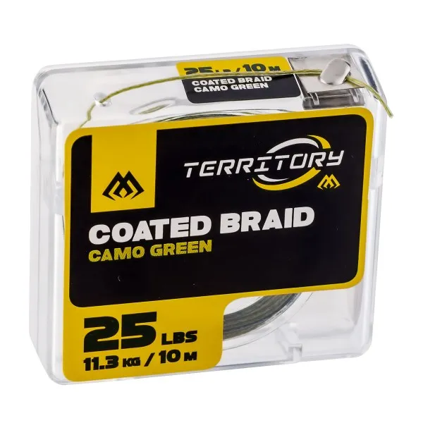 Плетено влакно с покритие за шарански поводи Mikado Coated Braid, Camo Green, 10 м