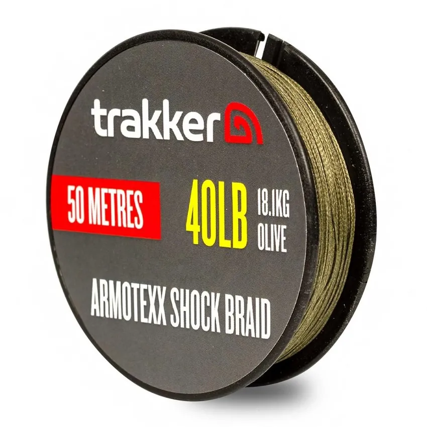 Плетеният шок лидер Trakker Armotexx Shock Braid е 8-жилно PE влакно с PTFE покритие, което осигурява изключителна устойчивост на абразия и гладко преминаване през ринговете на въдицата. 🎣