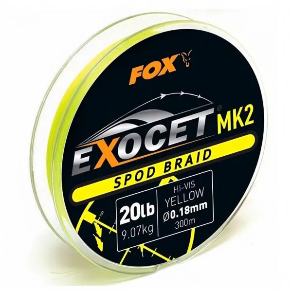 Плетеното влакно Fox Exocet MK2 Spod Braid е създадено специално за сподинг и работа със спод ракети. Изработено от висококачествени материали, осигурява отлична устойчивост на възли и минимална разтегливост. 🎣