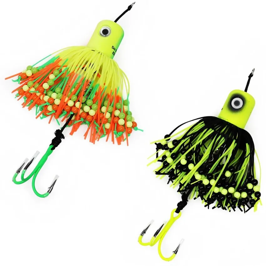 Реалистичните 3D очи и дългият силиконов скърт с мъниста създават динамична игра под водата. Привлича вниманието на сомовете дори в мътна вода. ⚡