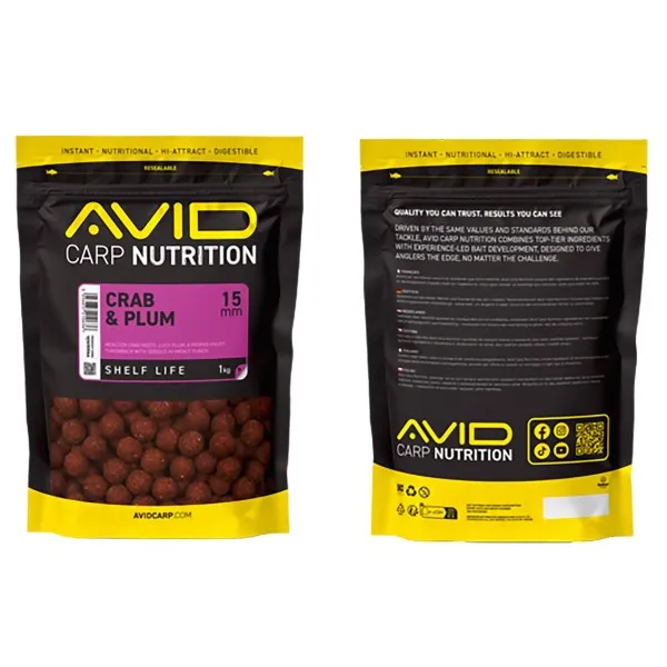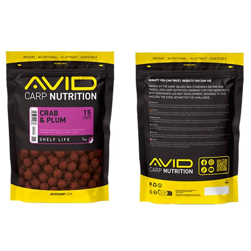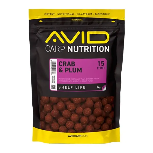 Avid Carp Shelf Life Boilies Crab & Plum съчетават интензивния вкус на рак с плодовите нотки на слива. Това създава изключително привлекателна стръв за шарански риболов. 🎣