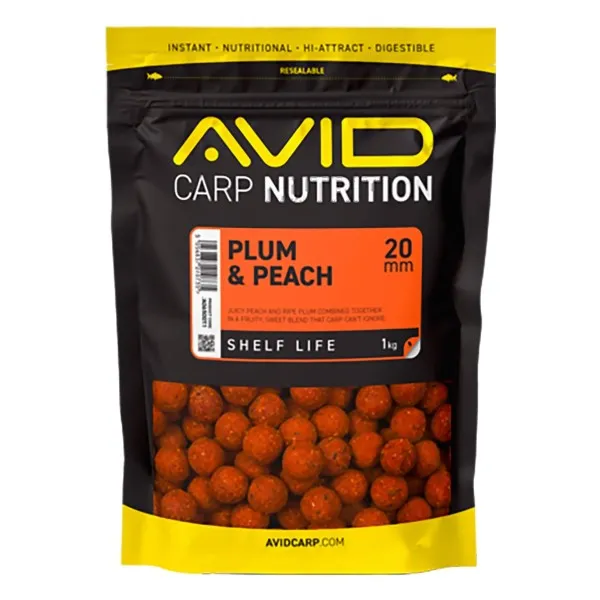 Протеинови топчета Avid Carp Shelf Life Boilies, Plum & Peach, 20 мм, 1 кг