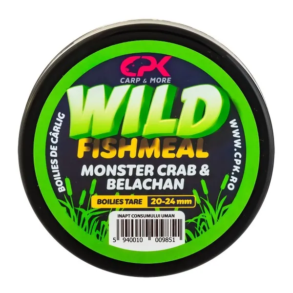 CPK Wild Carp Fishmeal са твърди протеинови топчета, разработени специално за риболов на шаран в диви водоеми и река Дунав. Комбинацията Monster Crab-Belachan имитира естествената храна на шарана - миди и раци.