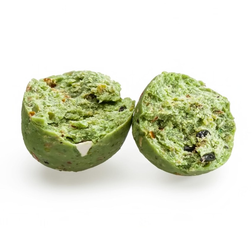 Новата производствена технология позволява добавяне на свежи съставки без ограничения. Топчетата имат естествена повърхност и значително по-висока издръжливост във водата.
