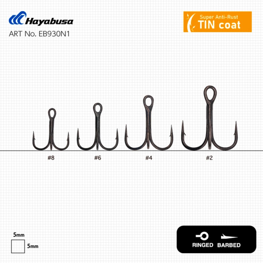 Опаковката съдържа 6 броя тройни куки Hayabusa TBL930.
