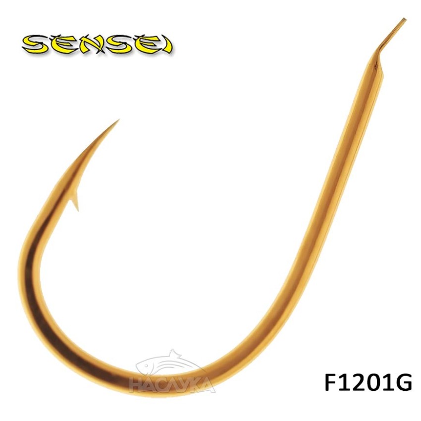 Куките Sensei от серията F1201G са с жълт (златист) цвят, средно широка извивка и леко насочен към стъблото връх.