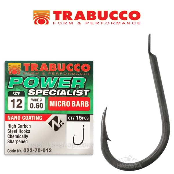 Куките Trabucco Power Specialist са с микроконтра и матово тефлоново покритие за премахване на нежеланите отблясъци.