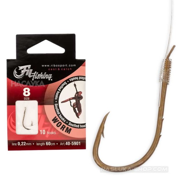 Вързани и пакетирани куки Fil Fishing с много високо качество, предназначени за риболов със стръв земни и торни червеи.