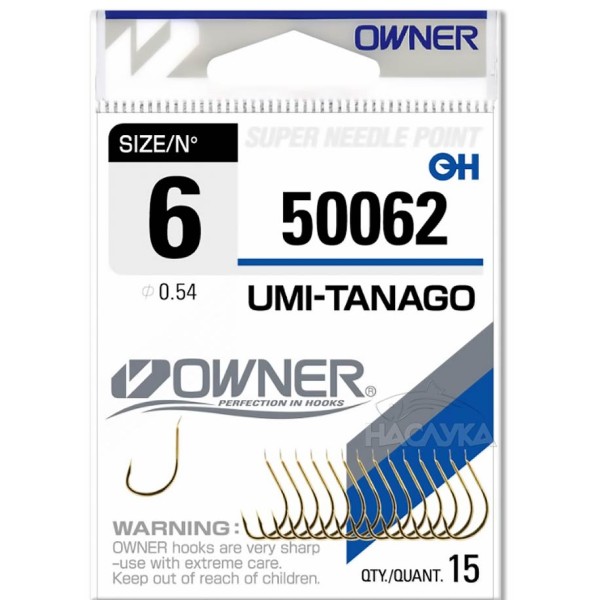 Owner Umi Tanago е бяла, кована кука с ясно изразена контра и право острие, което пробива и най-твърдите и кокалести устни. Подходяща е за всякакъв тип риболов - плувка, фидер, дъно, с жива рибка и др.