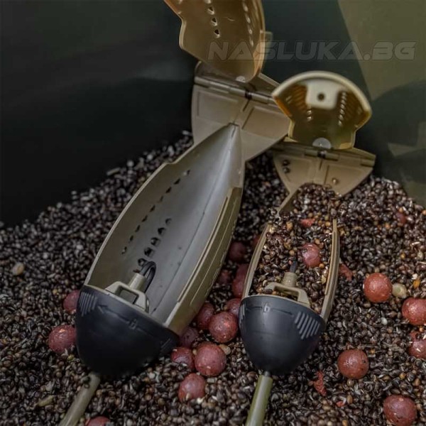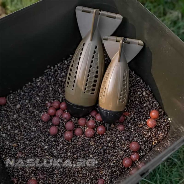 Аеродинамичната, респ. хидродинамична форма със стабилизатори подсигурява както точното замятане, така и достигане на желаното място за захранване на дъното на водоема.
