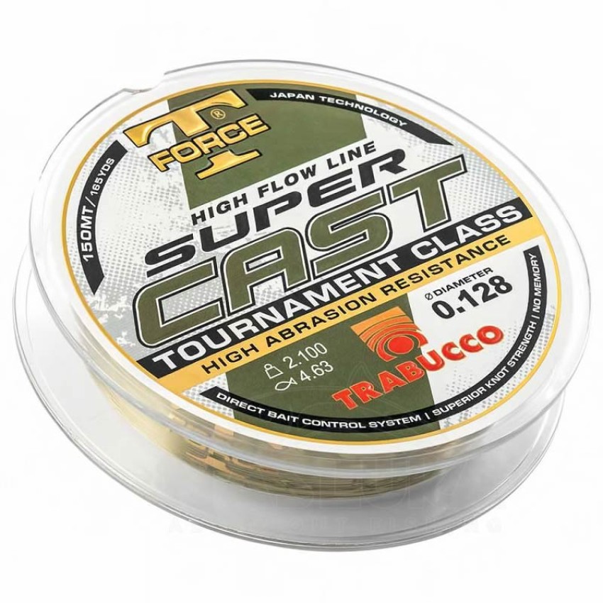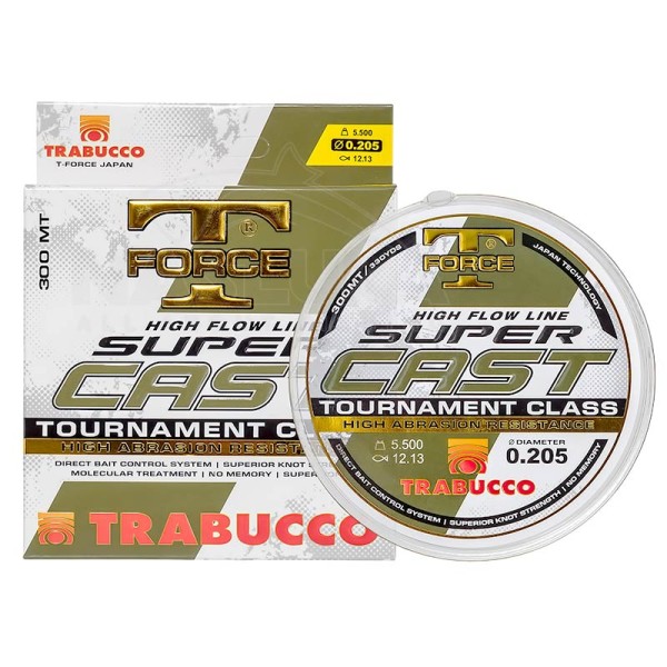 Trabucco T-Force Super Cast 300 м е висококачествено монофилно влакно, разработено с японска технология, което съчетава изключителна здравина, гъвкавост и устойчивост на абразия.