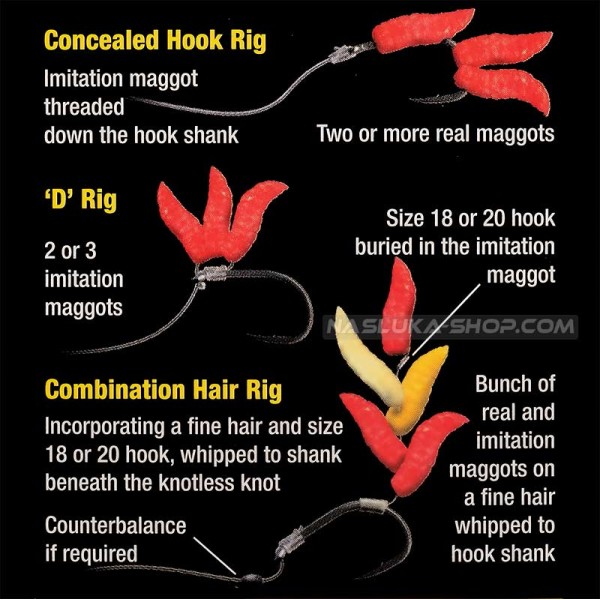 - За директен монтаж на куката, D-Rig или Combination Hair Rig