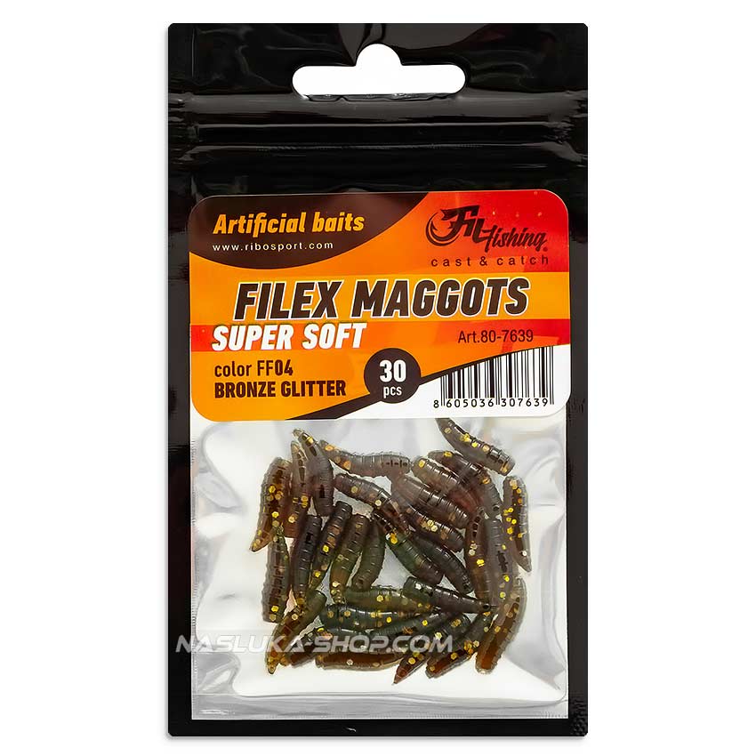 Прегледите над Силиконови бели червеи Filex Maggots, цвят FF04 Bronze Glitter