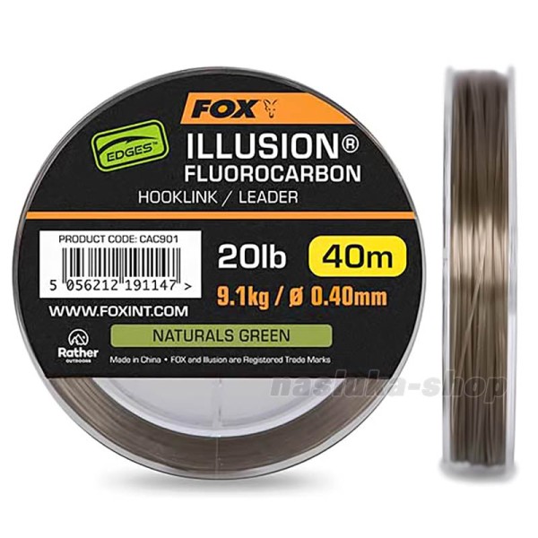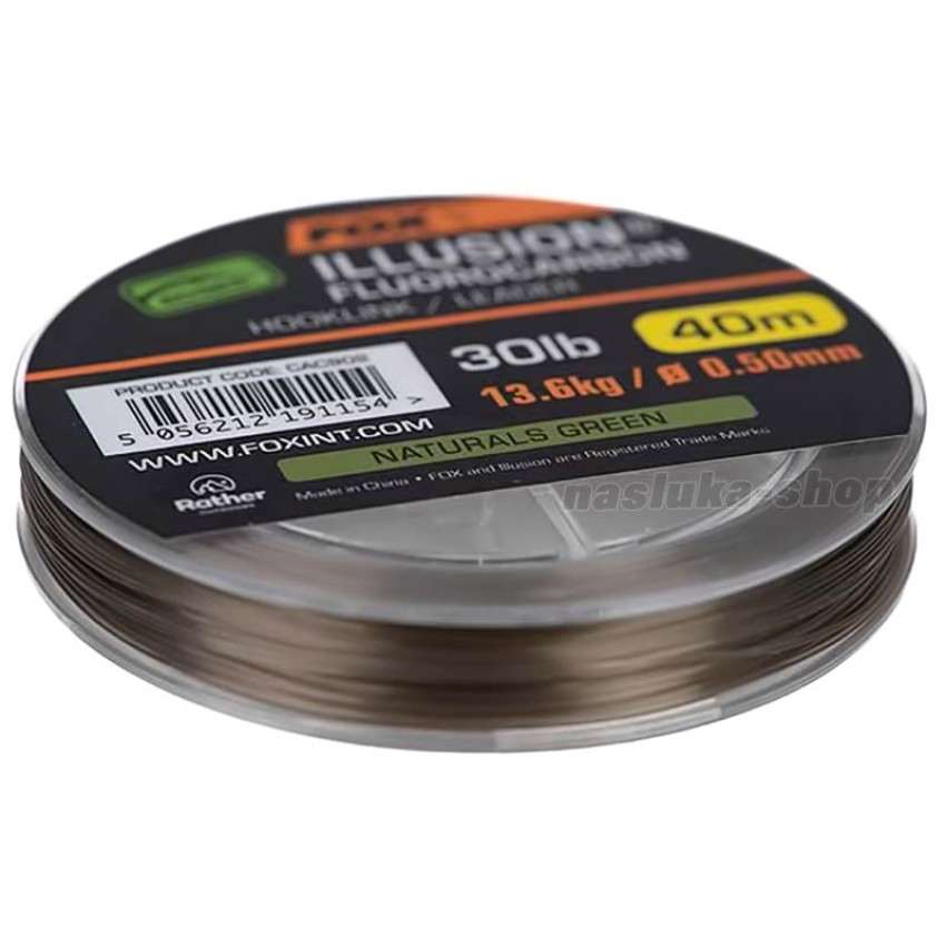 Fox Illusion Fluorocarbon Hooklink/Leader в цвят Naturals Green е висококачествен флуорокарбонов повод, предназначен за изработка на здрави и надеждни монтажи за шаран.