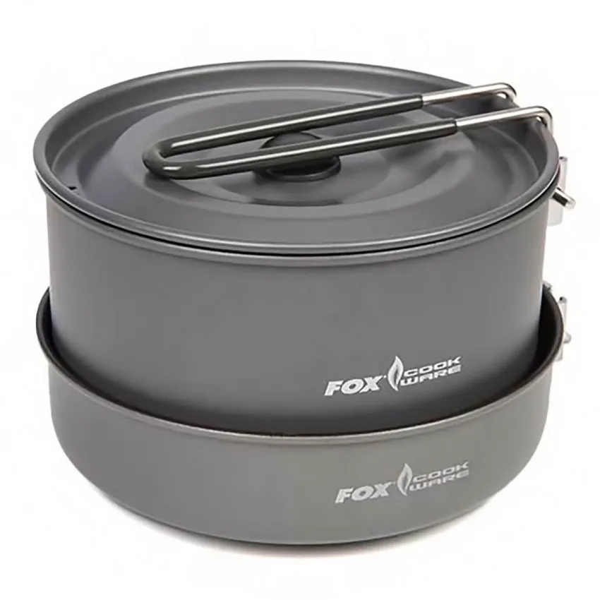 Комплектът за готвене Fox CookWare 3 Piece Cook Set включва тиган, средна по размери тенджера и чайник от 0,9 л. Алуминиевите стени имат издръжлива незалепваща повърхност 🔥