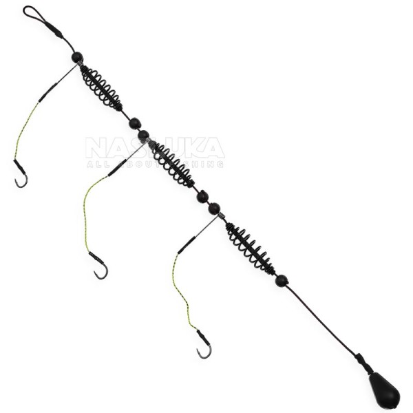 Състои се от три хранилки тип спирала, качествен вирбел за предотвратяване на усукването и три куки с подходящ размер с отлична здравина, монтирани на повод.
