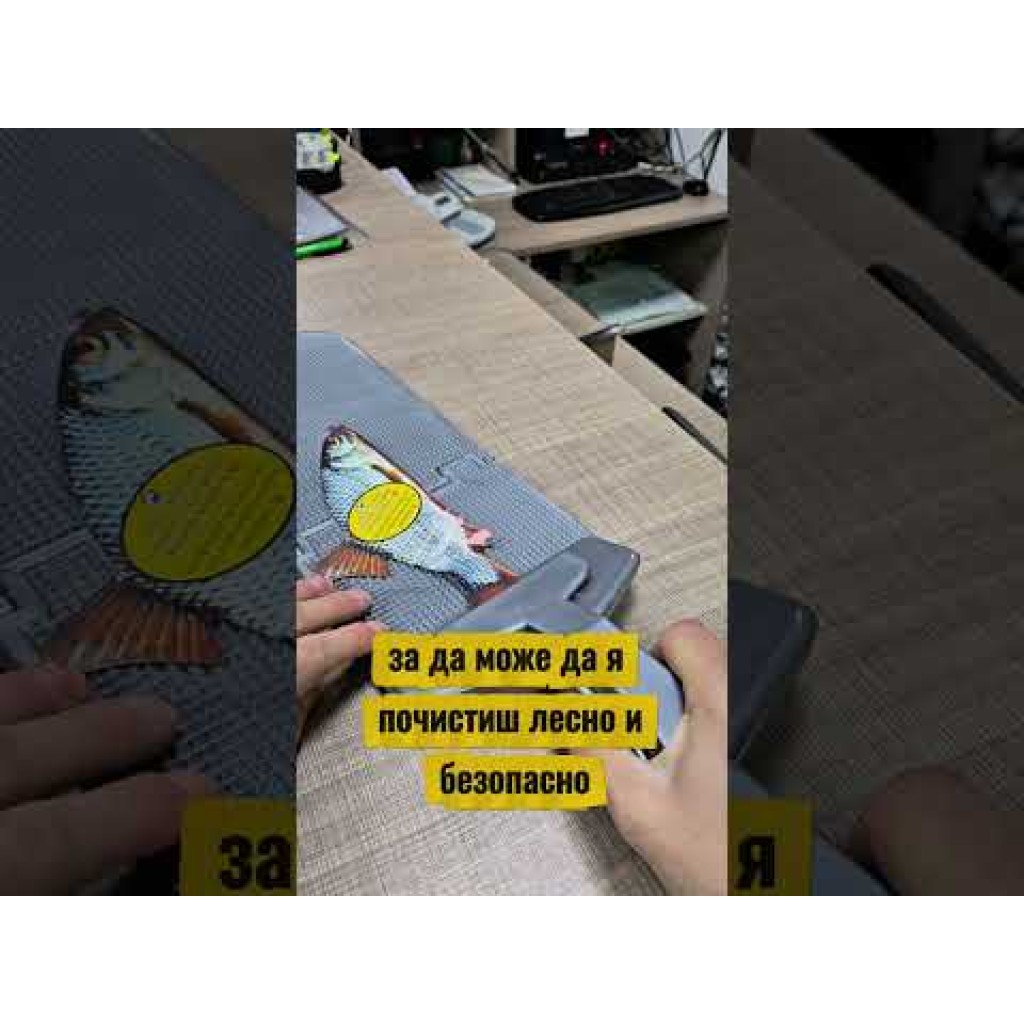 Оборудвана е със специализирана здрава скоба, която стабилно задържа рибата на място по време на обработка. 🐟 Релефната повърхност предотвратява плъзгане и гарантира сигурност.