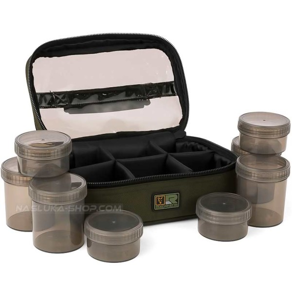 Fox Hookbaits Bag е практичен органайзер за съхранение нa стръв и добавки като топчета, пелети, дипове и атрактанти и др.