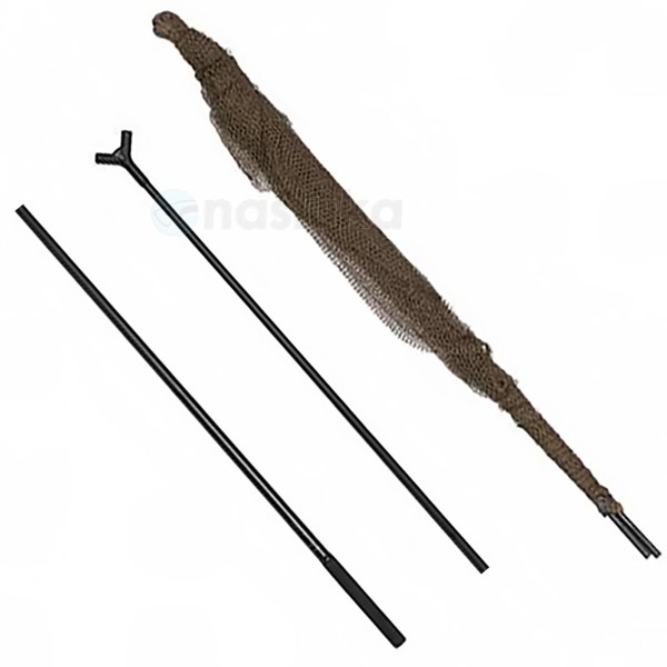 Дръжката с дължина от 180 см е разглобяема, от две секции. Произведена от усилен карбон, който гарантира баланс между здравина и удобство при маневриране. Кепът е оборудван с голяма глава с рамер 42 инча, подходяща за трофейни екземпляри. Сглобката е изработена от здрава ABS пластмаса, която осигурява стабилност при интензивна употреба.🔩