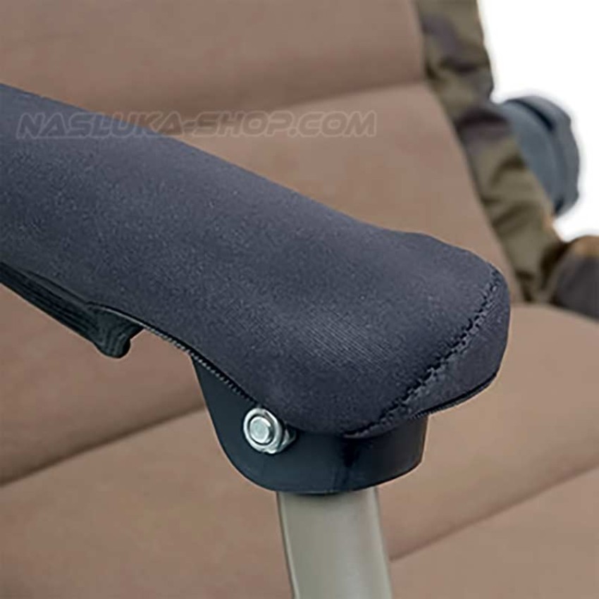 Fox R2 Chair има покрити с неопрен подлакътници и регулируем наклон на облегалката.
