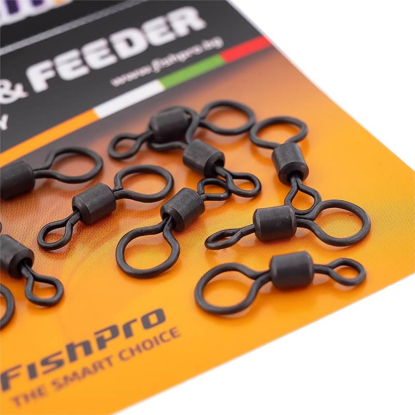 FishPro Big Eye Rolling Swivel са специализирани вирбели за шарански риболов. Едното ухо на вирбелите е с по-голям диаметър от другото.