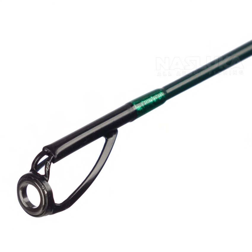 - Качествени компоненти: Висококачествени водачи Fuji и ергономична дръжка, която осигурява комфорт дори при продължителен риболов. Fuji водачите намаляват триенето и предотвратяват износването на линията.