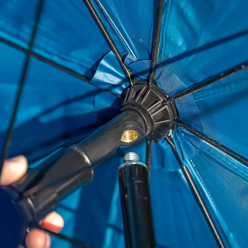 С диаметър 250 см чадърът осигурява достатъчно пространство за един риболовец и неговата екипировка.