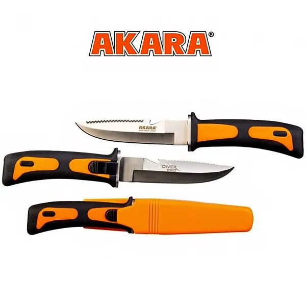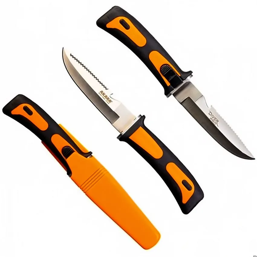 Akara Diver Pro KADP-11/5 е специализиран модел нож за водолази и любители на подводния риболов. Изработен от устойчива неръждаема стомана, той работи безотказно при дъжд, влага и солена вода. 🎣