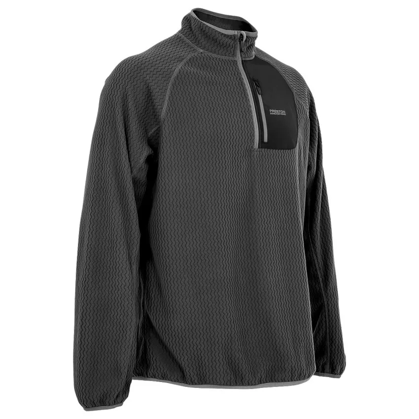 Леко и топло полар облекло за риболов с уникална зигзаг плетка, която задържа топлината без излишна тежест. Preston Core Collection Zig Zag Fleece е идеалният междинен слой за хладни дни край водата.