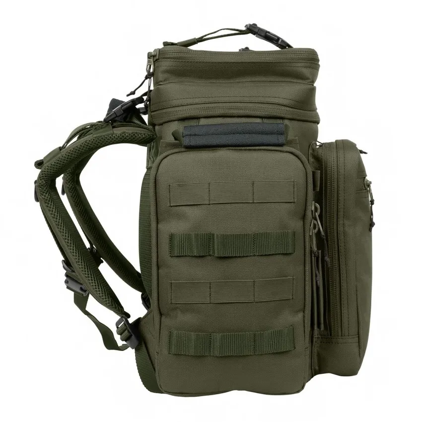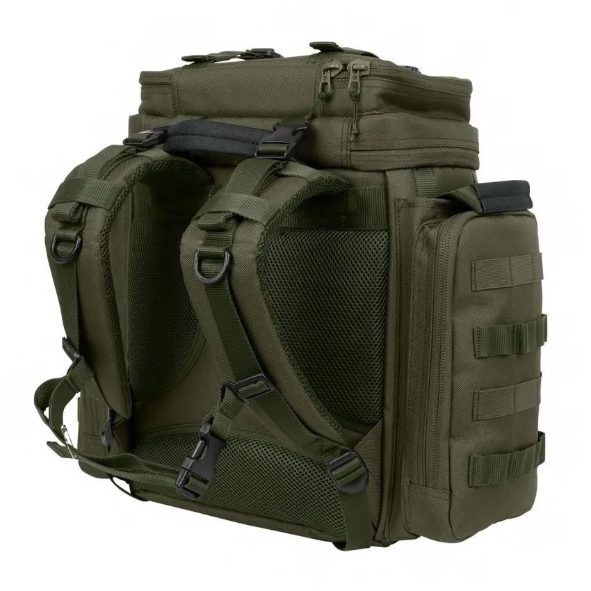 Горният джоб включва сваляема EVA тавичка с вграден магнитен ъгъл за монтажи. Големият преден джоб е идеален за кутии с принадлежности.