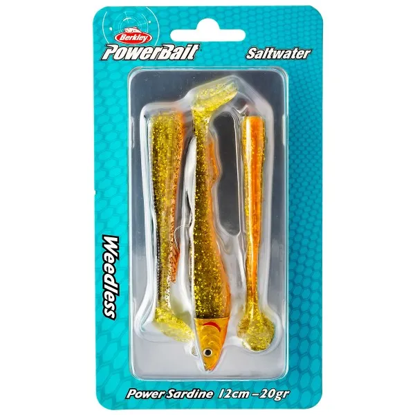 Сет от 3 бр. силиконови примамки и джиг глава Berkley Powerbait Power Sardine, 12 см, 20 г, Gold Motoroil