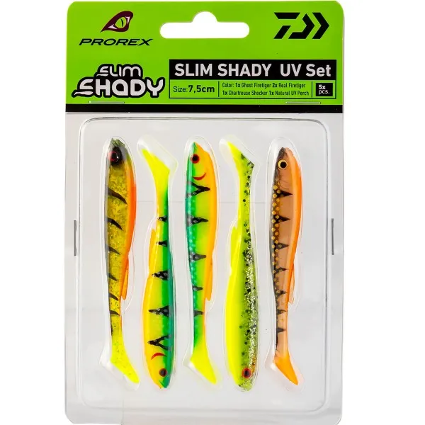 Сет силиконови примамки Daiwa Prorex Slim Shady UV Set, 7.5 см, 5 бр.