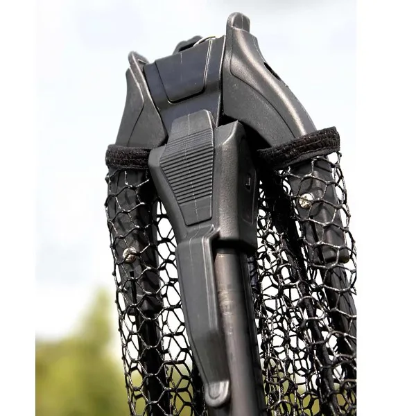 Изработен е с матово черно покритие премиум клас и каучукова мрежа, която е деликатна към уловената риба. 🐟