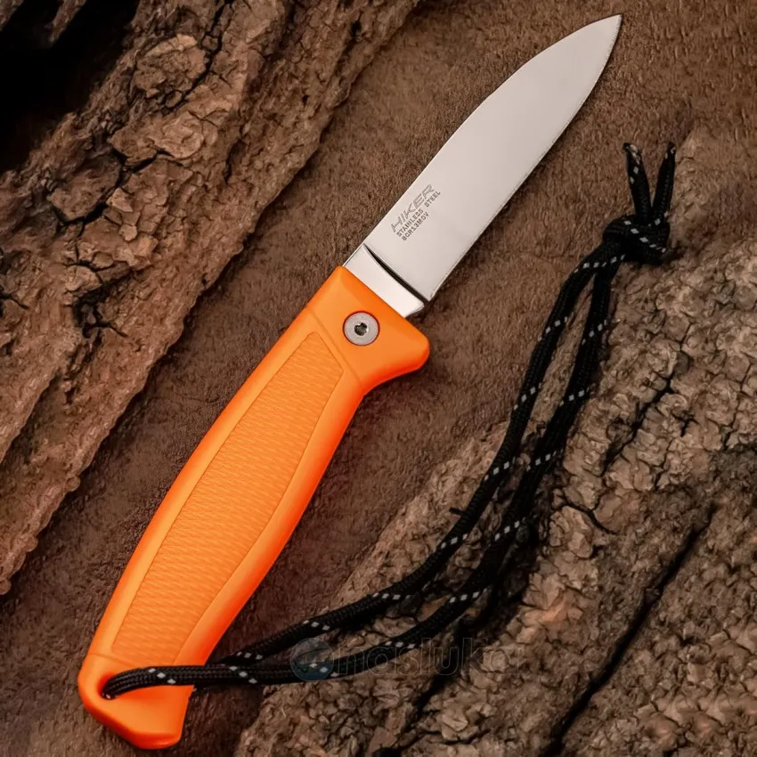 С ярката си оранжева дръжка той е лесен за откриване и винаги на разположение, независимо дали сте на къмпинг, риболов или планински преход.