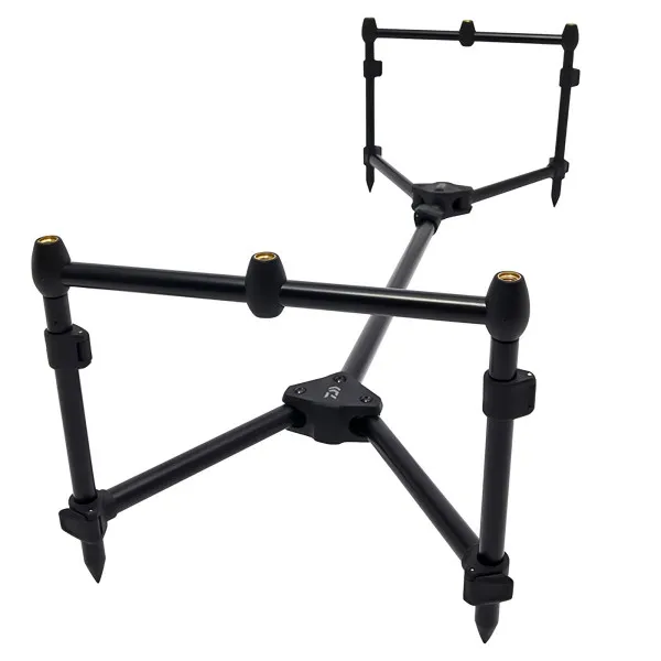 Ниската позиция на стойката я прави подходяща за риболов от брега при силен вятър. Алуминиевата конструкция намалява теглото без компромис с устойчивостта 🐟