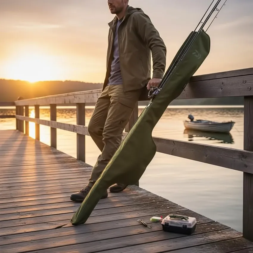 Изработен от здрав 500D полиестер, калъфът предпазва въдиците ви от дъжд, прах и механични увреждания. Вътрешната подплата предотвратява надраскване на бланката, макарата и водачите.