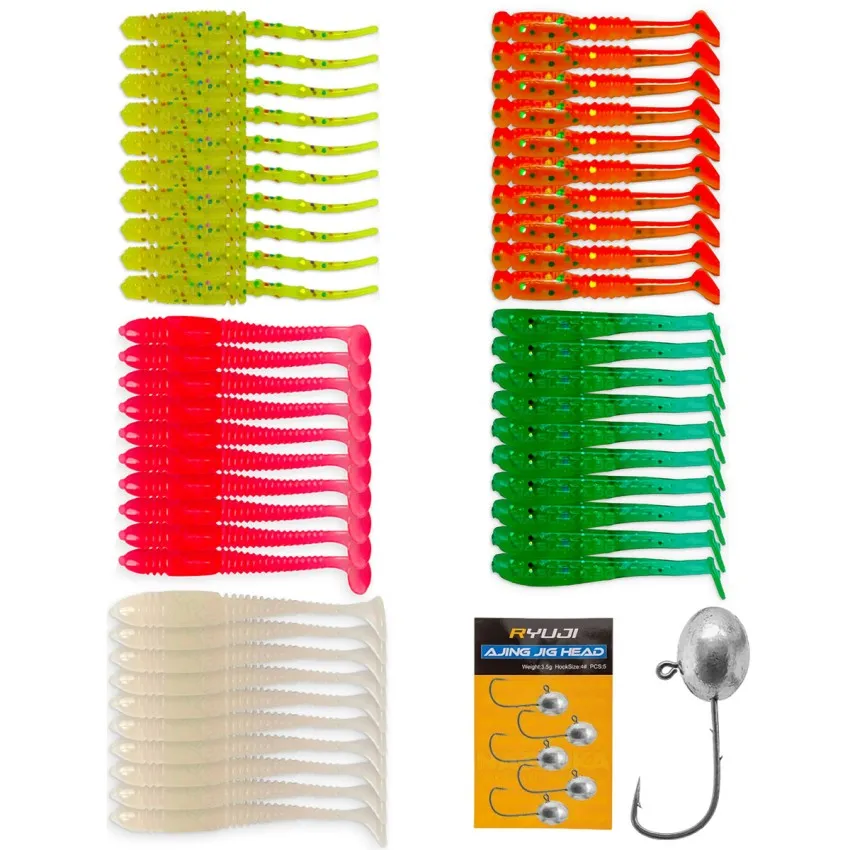 Силиконовите примамки Ryuji са специално разработени за Ajing и LRF риболов. Този комплект от 69 броя включва разнообразие от цветове и размери, подходящи за микроджиг риболов на ципура, сафрид, лихнус и др. 🎣