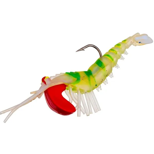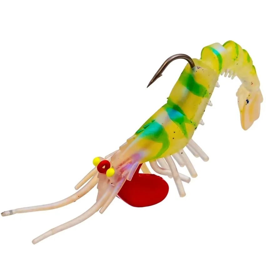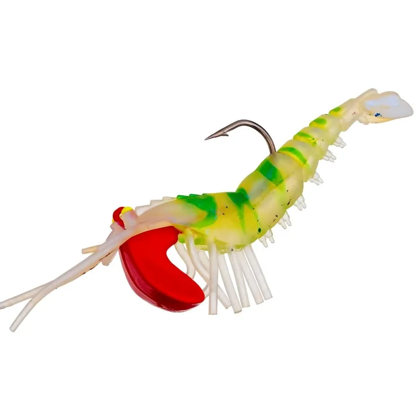 Открий силата на реалистичното движение със силиконовата примамка Скарида 7 см -Green Glow, предназначена за морски спининг риболов.