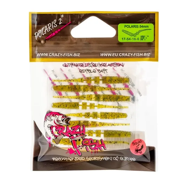 Crazy Fish Polaris 54 mm е мека силиконова примамка, създадена за ефективен улов на хищни сладководни риби. Моделът е идеален за костур, кефал и бяла риба. 🎣