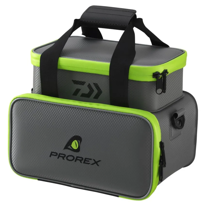 Daiwa Prorex EVA WP Tackle Container S е компактна и изцяло водоустойчива чанта, изработена от здрав EVA материал с 3K тъкана структура. Предлага надеждна защита срещу влага и се почиства лесно след всяко риболовно приключение. 🎣