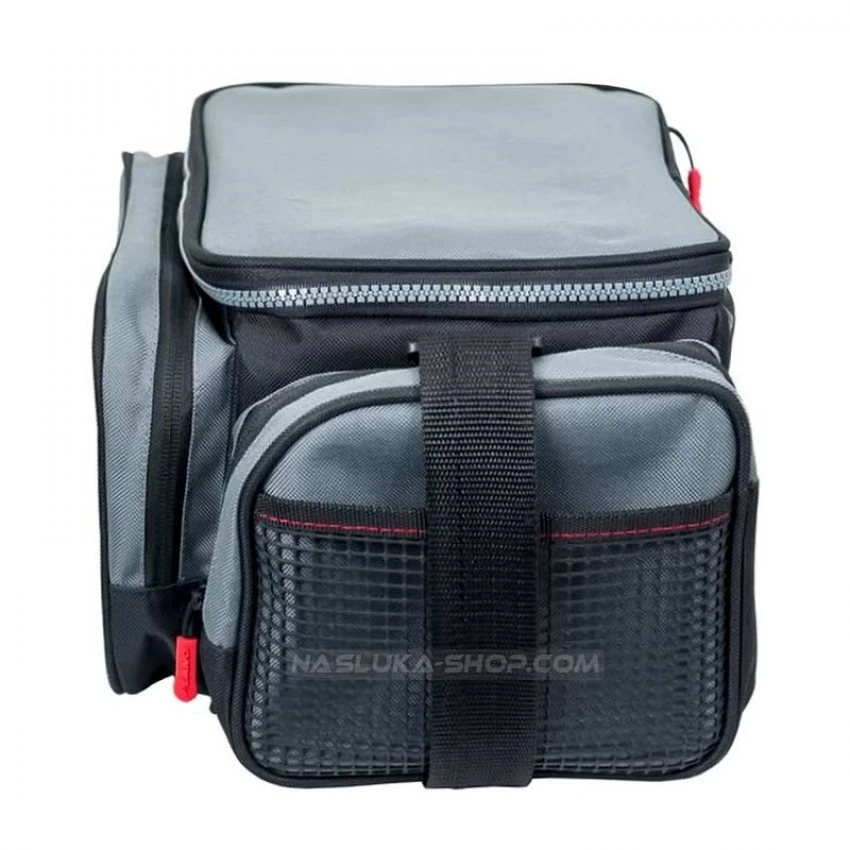 Разполага с три джоба с ципове - един фронтално разположен и два странични. Към всеки от страничните джобове има и по един мрежест джоб за допълнителната част от оборудването, за инструменти и др.